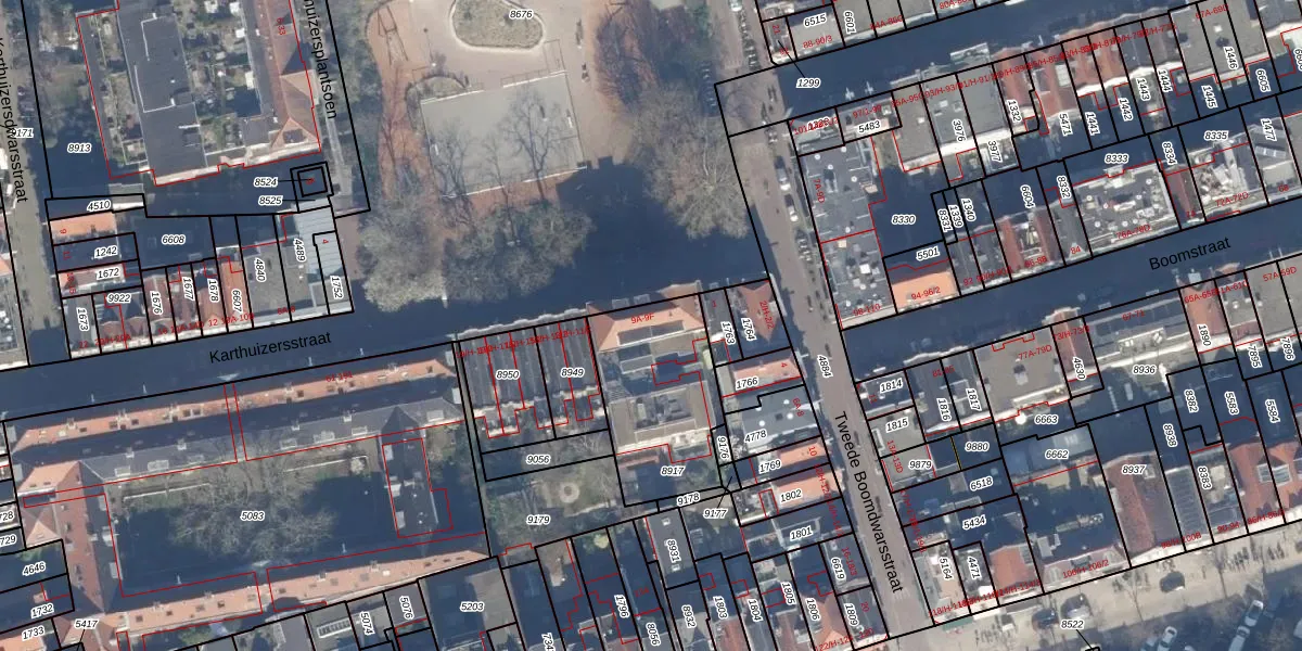 Het perceel waarop Karthuizersstraat 9-A staat heeft een oppervlakte van 505 m². Dit is een groot perceel. De perceeloppervlakte wordt geregistreerd door het Kadaster. Gedetailleerde informatie over de maten van dit perceel kunt u vinden in het rapport Kadastrale kaart met maatvoering van Karthuizersstraat 9-A.