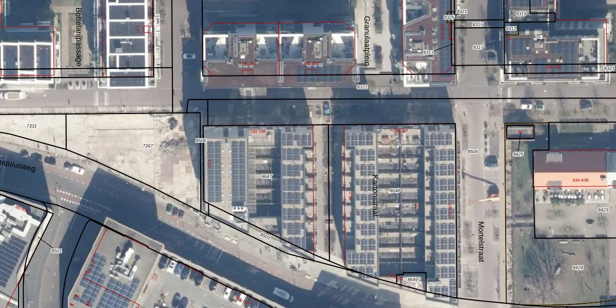 Kartonstraat 11 is gelegen op kadastraal perceel ASD02A8647. Deze kadastrale aanduiding is uniek en wordt gebruikt door het Kadaster om eigendomsrechten en andere zakelijke rechten vast te leggen. Het perceel maakt onderdeel uit van de kadastrale gemeente Amsterdam.