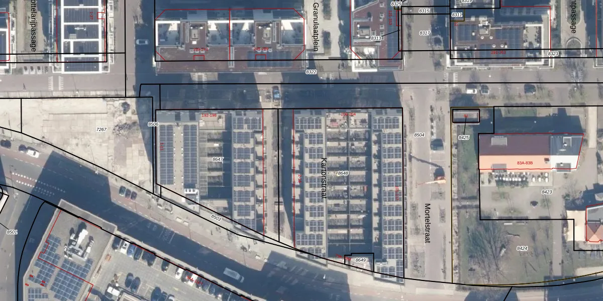 Het perceel waarop het adres ligt is ASD02-A-8648. De afkorting 'ASD02' staat voor kadastrale gemeente Amsterdam. Het perceel is 2067 m² groot. Dat is kleiner dan de gemiddelde perceeloppervlakte in Amsterdam, dat op 2763,93 m² ligt. Het grootste perceel in de kadastrale gemeente is 14,3 ha. Het kleinste perceel heeft een oppervlakte van 0 m². Er zijn 22 adressen aanwezig op het perceel. De huidige grenzen van het perceel zijn digitaal in de Basisregistratie Kadaster (BRK) geregistreerd op 25-06-2025.
