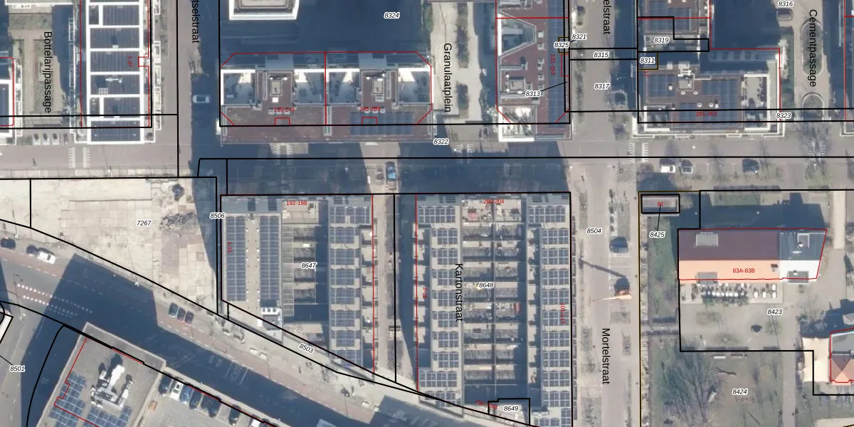 Het perceel waarop Kartonstraat 16 staat heeft een oppervlakte van 2067 m². Dit is een zeer groot perceel. De perceeloppervlakte wordt geregistreerd door het Kadaster. Gedetailleerde informatie over de maten van dit perceel kunt u vinden in het rapport Kadastrale kaart met maatvoering van Kartonstraat 16.