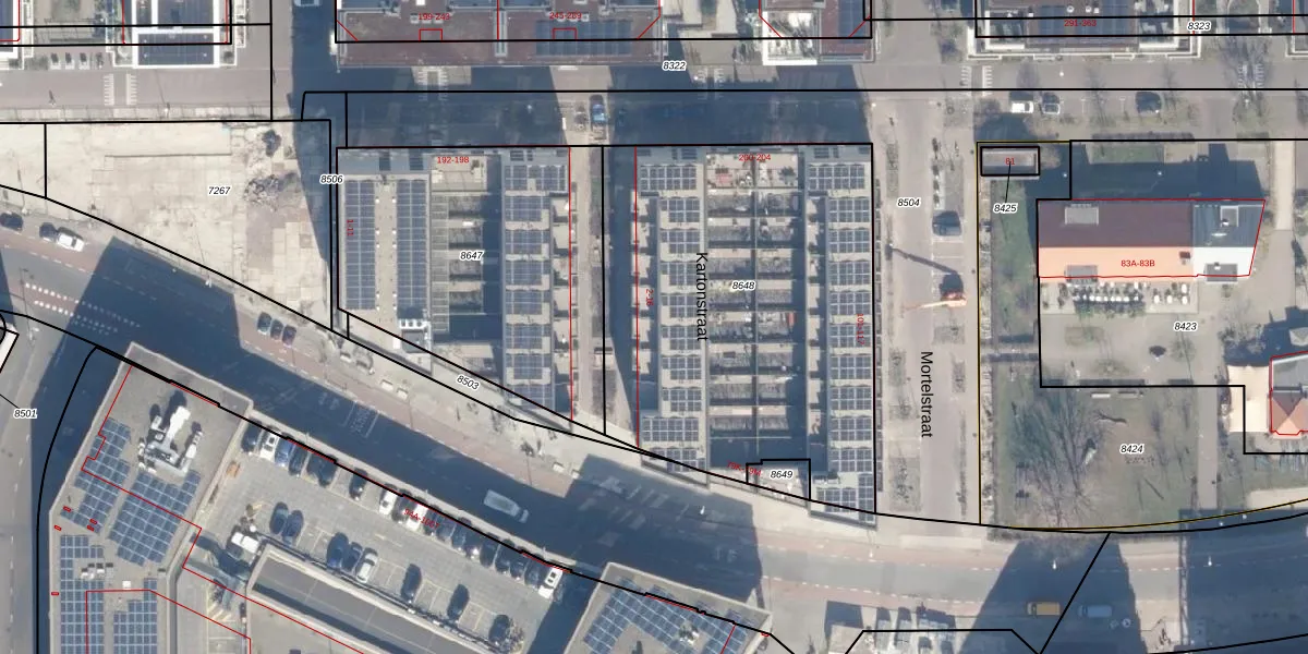 Het perceel waarop Kartonstraat 6 staat heeft een oppervlakte van 2067 m². Dit is een zeer groot perceel. De perceeloppervlakte wordt geregistreerd door het Kadaster. Gedetailleerde informatie over de maten van dit perceel kunt u vinden in het rapport Kadastrale kaart met maatvoering van Kartonstraat 6.
