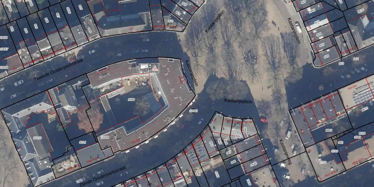 Het adres is gelegen op perceel 8588 in de sectie S en de kadastrale gemeente Amsterdam. De kadastrale aanduiding is aldus ASD15-S-8588. De gemiddelde perceeloppervlakte in de kadastrale gemeente Amsterdam is 537,06 m². Dit perceel is met zijn 2146 m² dus groter dan gemiddeld. Het grootste perceel in de kadastrale gemeente is 14,5 ha. Het kleinste perceel heeft een oppervlakte van 0 m². Op het perceel zijn 84 adressen aanwezig. De laatste wijziging in het de Basisregistratie Kadaster (BRK) was op 30-06-2023.