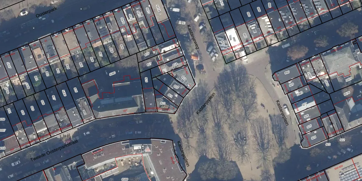 Het perceel waarop het adres ligt is ASD15-S-820. De afkorting 'ASD15' staat voor kadastrale gemeente Amsterdam. Het perceel is kleiner dan gemiddeld in Amsterdam. Het perceel is 106 m² groot, terwijl het gemiddelde ligt op 537,06 m². De grootste perceeloppervlakte in de kadastrale gemeente is 14,5 ha. De kleinste oppervlakte bedraagt 0 m². Er zijn 3 adressen aanwezig op het perceel. De laatste wijziging in het de Basisregistratie Kadaster (BRK) was op 17-11-2006.