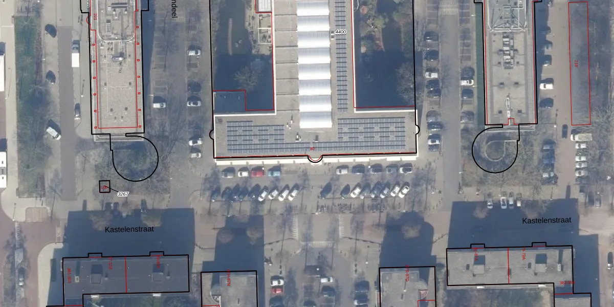 Het perceel waarop Kastelenstraat 82 staat heeft een oppervlakte van 5463 m². Dit is een zeer groot perceel. De perceeloppervlakte wordt geregistreerd door het Kadaster. Gedetailleerde informatie over de maten van dit perceel kunt u vinden in het rapport Kadastrale kaart met maatvoering van Kastelenstraat 82.