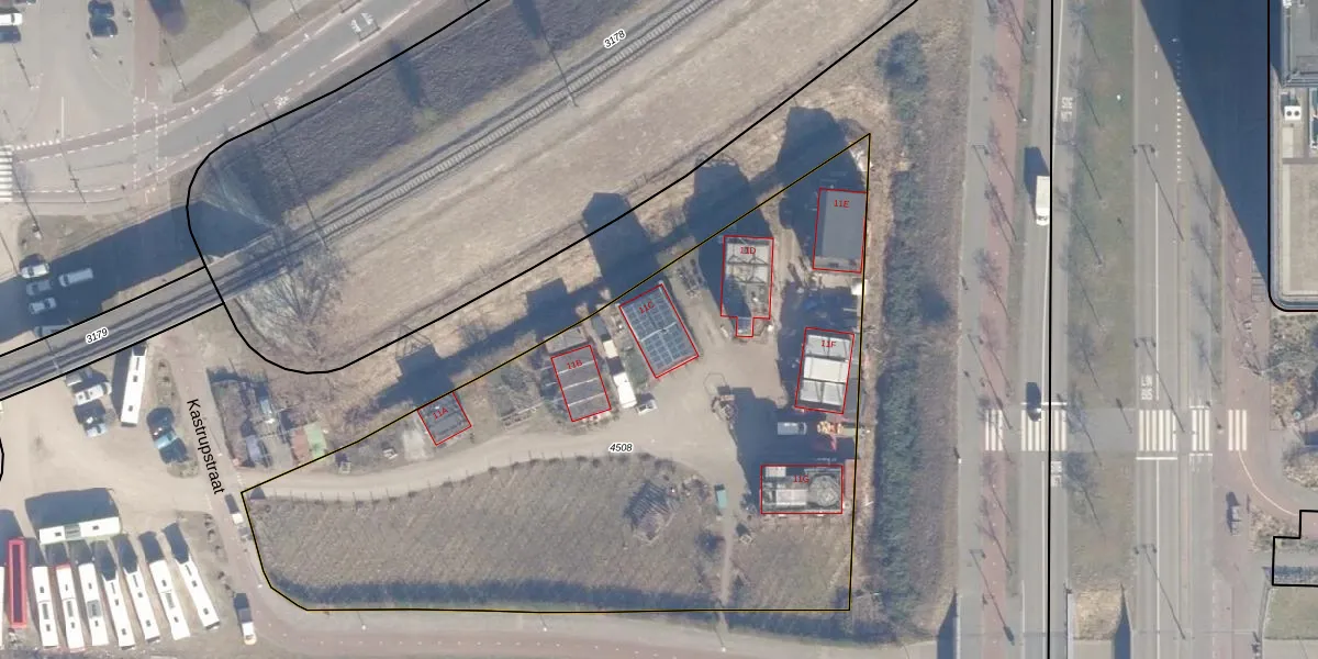 Het perceel waarop Kastrupstraat 11-C staat heeft een oppervlakte van 3941 m². Dit is een zeer groot perceel. De perceeloppervlakte wordt geregistreerd door het Kadaster. Gedetailleerde informatie over de maten van dit perceel kunt u vinden in het rapport Kadastrale kaart met maatvoering van Kastrupstraat 11-C.