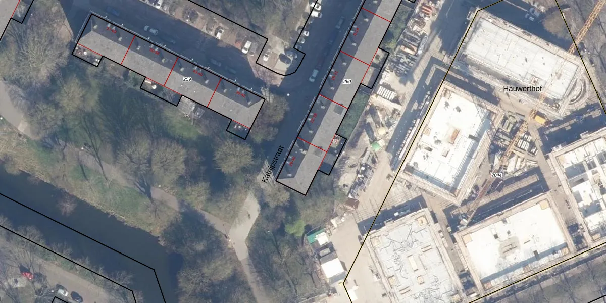 Het perceel waarop Katrijpstraat 29 staat heeft een oppervlakte van 1004 m². Dit is een zeer groot perceel. De perceeloppervlakte wordt geregistreerd door het Kadaster. Gedetailleerde informatie over de maten van dit perceel kunt u vinden in het rapport Kadastrale kaart met maatvoering van Katrijpstraat 29.