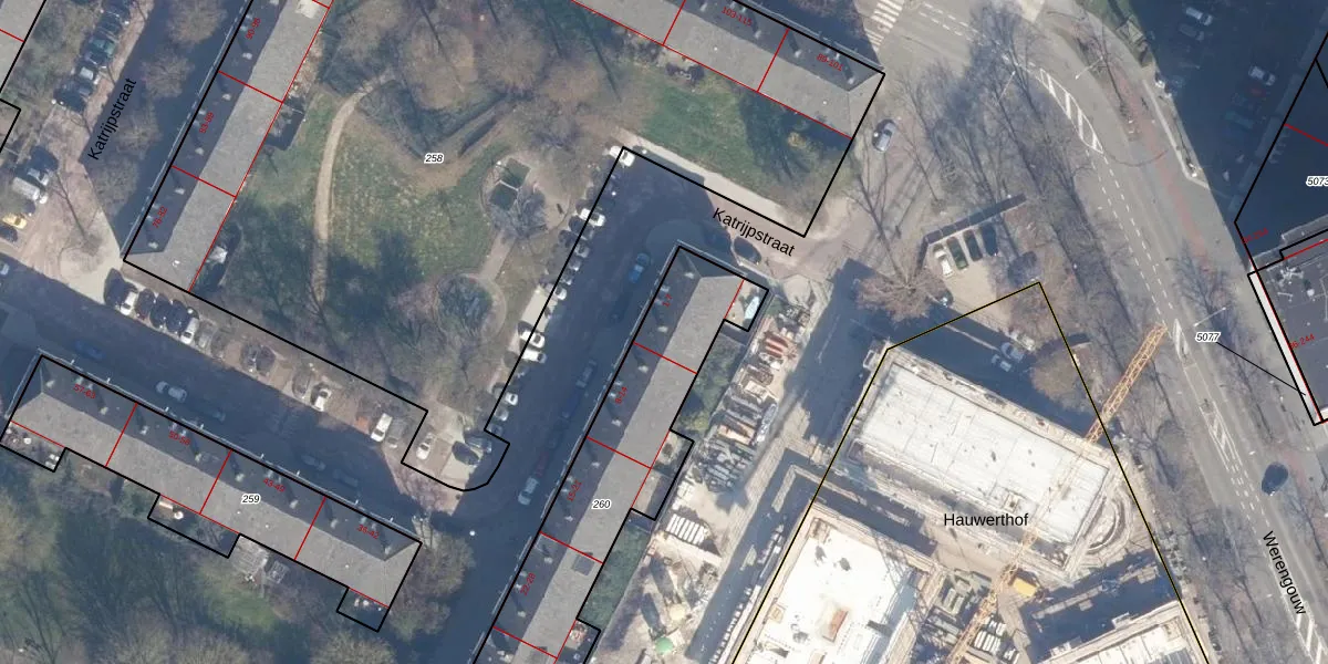 Het perceel waarop Katrijpstraat 6 staat heeft een oppervlakte van 1004 m². Dit is een zeer groot perceel. De perceeloppervlakte wordt geregistreerd door het Kadaster. Gedetailleerde informatie over de maten van dit perceel kunt u vinden in het rapport Kadastrale kaart met maatvoering van Katrijpstraat 6.