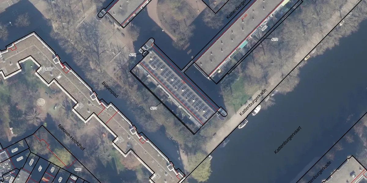 Het perceel waarop Kattenburgerhof 14 staat heeft een oppervlakte van 3233 m². Dit is een zeer groot perceel. De perceeloppervlakte wordt geregistreerd door het Kadaster. Gedetailleerde informatie over de maten van dit perceel kunt u vinden in het rapport Kadastrale kaart met maatvoering van Kattenburgerhof 14.