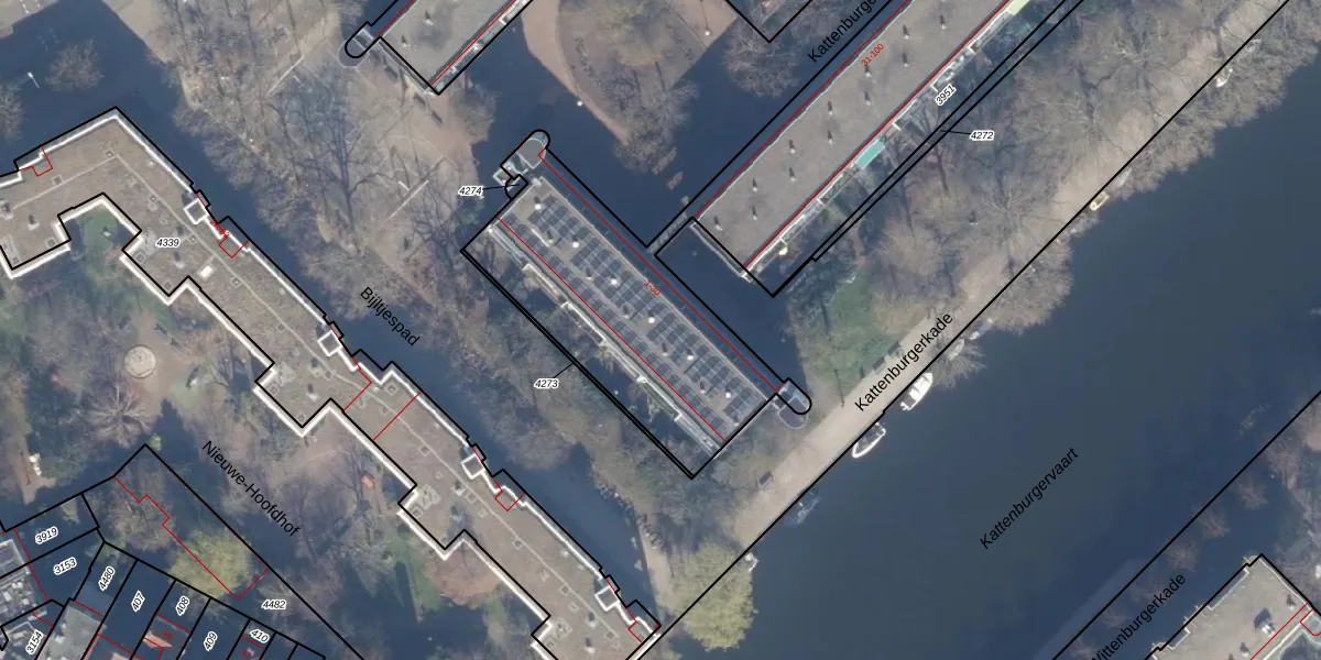 Het perceel waarop Kattenburgerhof 15 staat heeft een oppervlakte van 3233 m². Dit is een zeer groot perceel. De perceeloppervlakte wordt geregistreerd door het Kadaster. Gedetailleerde informatie over de maten van dit perceel kunt u vinden in het rapport Kadastrale kaart met maatvoering van Kattenburgerhof 15.