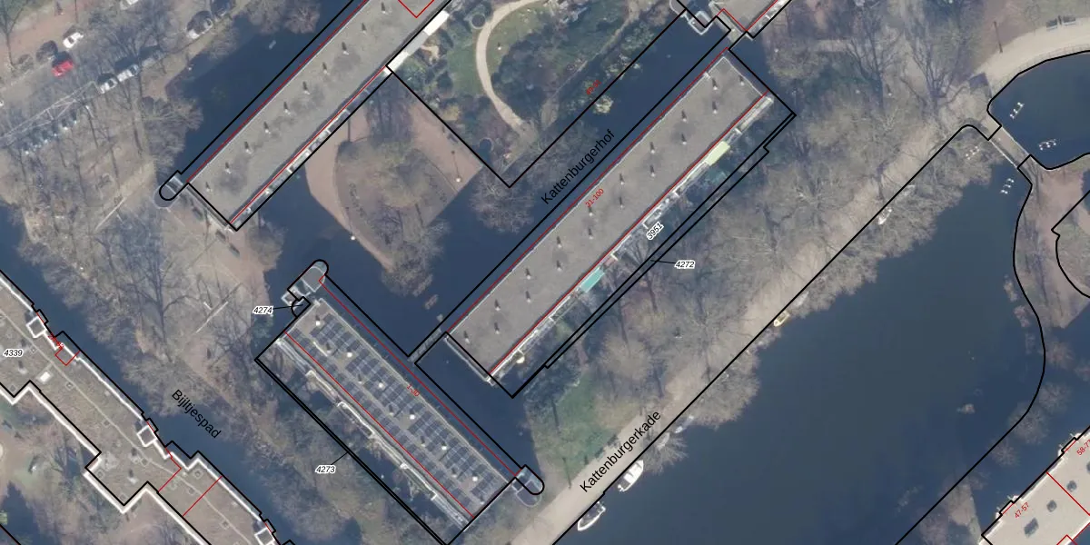 Het perceel waarop Kattenburgerhof 43 staat heeft een oppervlakte van 3233 m². Dit is een zeer groot perceel. De perceeloppervlakte wordt geregistreerd door het Kadaster. Gedetailleerde informatie over de maten van dit perceel kunt u vinden in het rapport Kadastrale kaart met maatvoering van Kattenburgerhof 43.