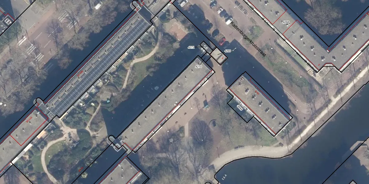 Het perceel waarop Kattenburgerhof 89 staat heeft een oppervlakte van 3233 m². Dit is een zeer groot perceel. De perceeloppervlakte wordt geregistreerd door het Kadaster. Gedetailleerde informatie over de maten van dit perceel kunt u vinden in het rapport Kadastrale kaart met maatvoering van Kattenburgerhof 89.