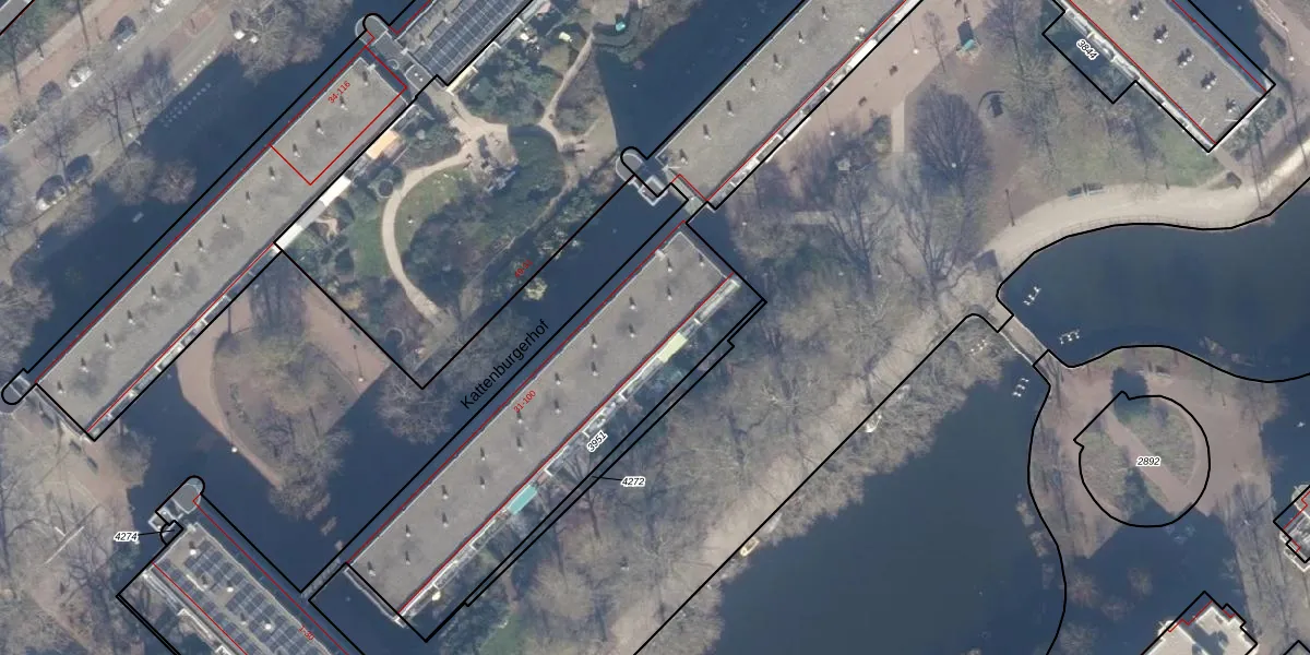 Het perceel waarop Kattenburgerhof 96 staat heeft een oppervlakte van 3233 m². Dit is een zeer groot perceel. De perceeloppervlakte wordt geregistreerd door het Kadaster. Gedetailleerde informatie over de maten van dit perceel kunt u vinden in het rapport Kadastrale kaart met maatvoering van Kattenburgerhof 96.