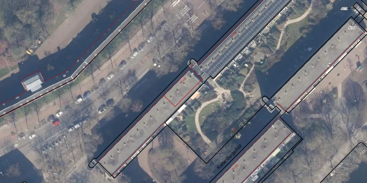 Het perceel waarop Kattenburgerstraat 100 staat heeft een oppervlakte van 6001 m². Dit is een zeer groot perceel. De perceeloppervlakte wordt geregistreerd door het Kadaster. Gedetailleerde informatie over de maten van dit perceel kunt u vinden in het rapport Kadastrale kaart met maatvoering van Kattenburgerstraat 100.