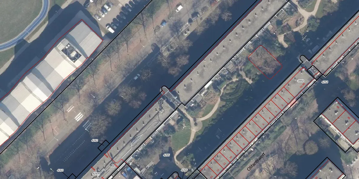 Het perceel waarop het adres ligt is ASD10-N-4264. De afkorting 'ASD10' staat voor kadastrale gemeente Amsterdam. De oppervlakte van het perceel is 6001 m². Dat is groter dan gemiddeld in Amsterdam, waar de gemiddelde perceeloppervlakte op 1949,06 m² ligt. De grootste perceeloppervlakte in de kadastrale gemeente is 17,2 ha. De kleinste oppervlakte bedraagt 0 m². Er zijn 191 adressen aanwezig op het perceel. De huidige grenzen van het perceel zijn digitaal in de Basisregistratie Kadaster (BRK) geregistreerd op 22-10-2009.