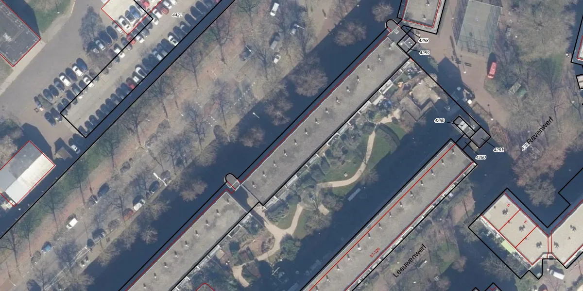 Het perceel waarop het adres ligt is ASD10-N-4264. De afkorting 'ASD10' staat voor kadastrale gemeente Amsterdam. De gemiddelde perceeloppervlakte in de kadastrale gemeente Amsterdam is 1949,06 m². Dit perceel is met zijn 6001 m² dus groter dan gemiddeld. Het grootste perceel in de kadastrale gemeente is 17,2 ha. Het kleinste perceel heeft een oppervlakte van 0 m². Op het perceel liggen in totaal 191 adressen. De huidige grenzen van het perceel zijn digitaal in de Basisregistratie Kadaster (BRK) geregistreerd op 22-10-2009.