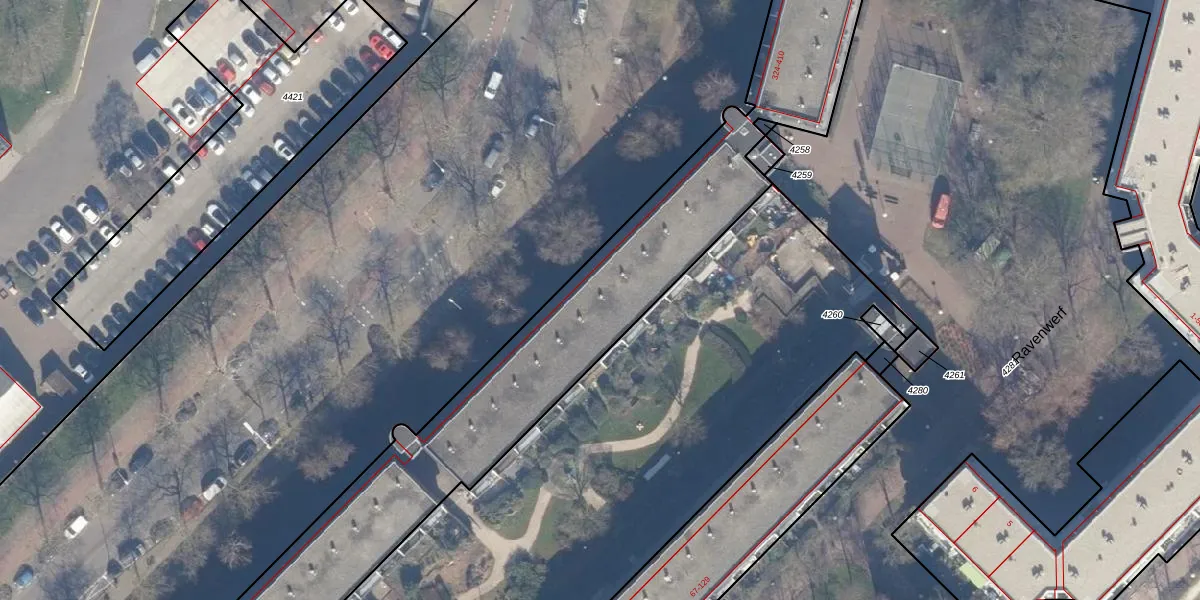 Het perceel waarop het adres ligt is ASD10-N-4264. De afkorting 'ASD10' staat voor kadastrale gemeente Amsterdam. De gemiddelde perceeloppervlakte in de kadastrale gemeente Amsterdam is 1949,06 m². Dit perceel is met zijn 6001 m² dus groter dan gemiddeld. Het grootste perceel in de kadastrale gemeente is 17,2 ha. Het kleinste perceel heeft een oppervlakte van 0 m². Er zijn 191 adressen aanwezig op het perceel. De huidige grenzen van het perceel zijn digitaal in de Basisregistratie Kadaster (BRK) geregistreerd op 22-10-2009.