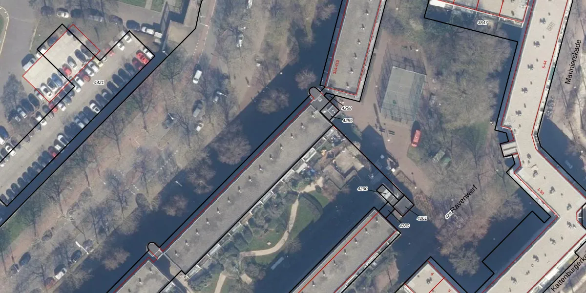 Het perceel waarop het adres ligt is ASD10-N-4264. De afkorting 'ASD10' staat voor kadastrale gemeente Amsterdam. De gemiddelde perceeloppervlakte in de kadastrale gemeente Amsterdam is 1949,06 m². Dit perceel is met zijn 6001 m² dus groter dan gemiddeld. Het grootste perceel in de kadastrale gemeente is 17,2 ha. Het kleinste perceel heeft een oppervlakte van 0 m². Op het perceel zijn 191 adressen aanwezig. In de Basisregistratie Kadaster (BRK) werden de grenzen van het perceel geregistreerd op 22-10-2009.