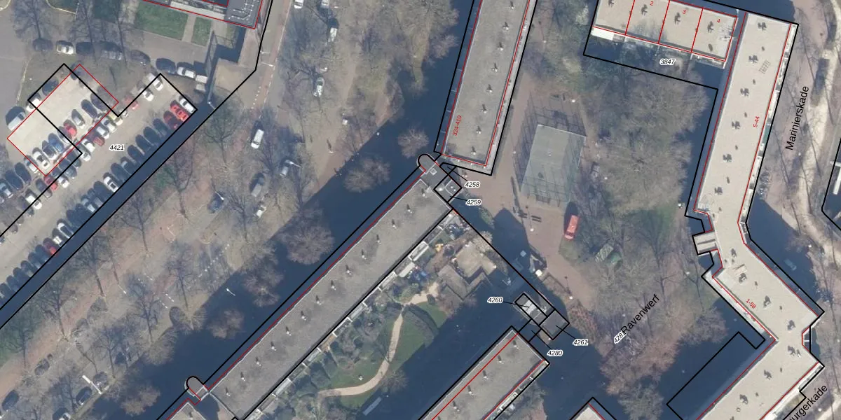 Het perceel waarop het adres ligt is ASD10-N-4264. De afkorting 'ASD10' staat voor kadastrale gemeente Amsterdam. De gemiddelde perceeloppervlakte in de kadastrale gemeente Amsterdam is 1949,06 m². Dit perceel is met zijn 6001 m² dus groter dan gemiddeld. Het grootste perceel in de kadastrale gemeente is 17,2 ha. Het kleinste perceel heeft een oppervlakte van 0 m². Op het perceel zijn 191 adressen aanwezig. In de Basisregistratie Kadaster (BRK) werden de grenzen van het perceel geregistreerd op 22-10-2009.
