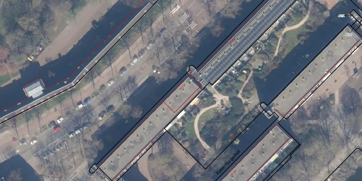 Het perceel waarop Kattenburgerstraat 48 staat heeft een oppervlakte van 6001 m². Dit is een zeer groot perceel. De perceeloppervlakte wordt geregistreerd door het Kadaster. Gedetailleerde informatie over de maten van dit perceel kunt u vinden in het rapport Kadastrale kaart met maatvoering van Kattenburgerstraat 48.