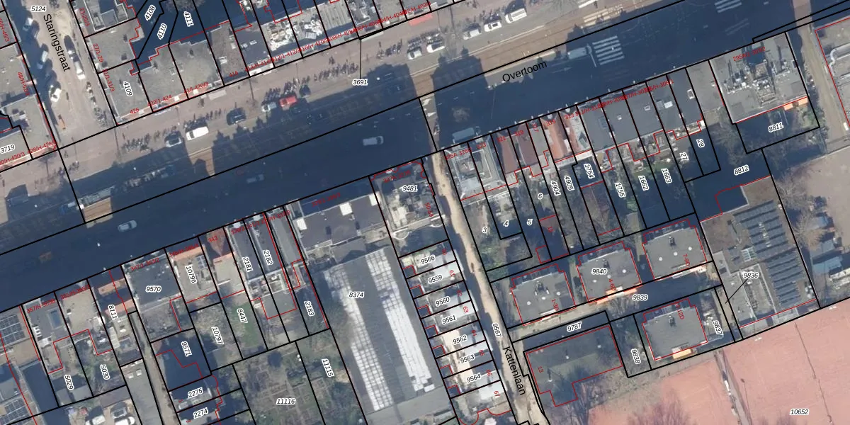 Kattenlaan 55 is gelegen op kadastraal perceel ASD17U9481. Deze kadastrale aanduiding is uniek en wordt gebruikt door het Kadaster om eigendomsrechten en andere zakelijke rechten vast te leggen. Het perceel maakt onderdeel uit van de kadastrale gemeente Amsterdam.
