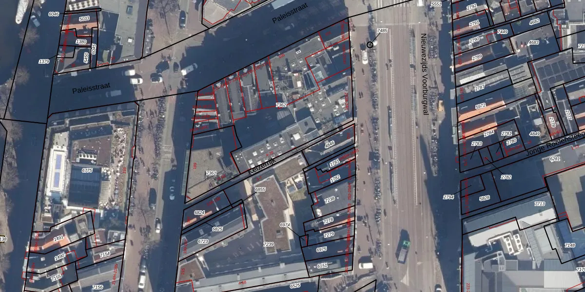 Het perceel waarop het adres ligt is ASD04-F-7362. De afkorting 'ASD04' staat voor kadastrale gemeente Amsterdam. De oppervlakte van het perceel is 1575 m². Dat is groter dan gemiddeld in Amsterdam, waar de gemiddelde perceeloppervlakte op 379,09 m² ligt. Het kleinste perceel in de kadastrale gemeente is 0 m² groot. De grootste perceeloppervlakte is 7,5 ha. Er zijn 99 adressen aanwezig op het perceel. De laatste wijziging in het de Basisregistratie Kadaster (BRK) was op 26-10-2006.