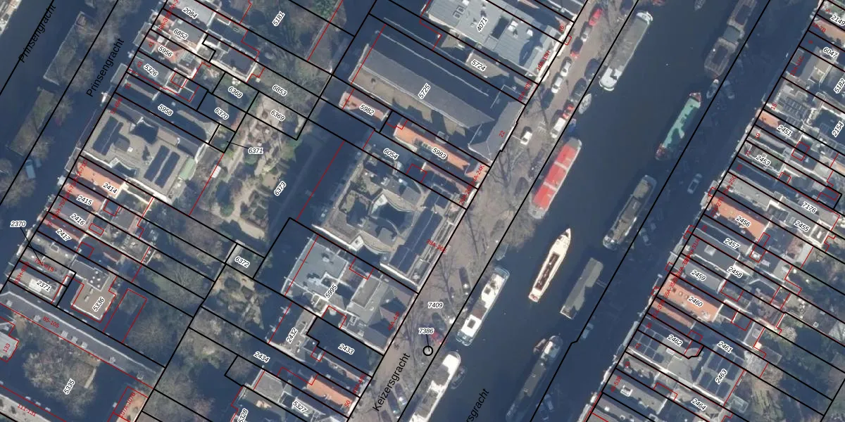 Het perceel waarop Keizersgracht 32-D staat heeft een oppervlakte van 1956 m². Dit is een zeer groot perceel. De perceeloppervlakte wordt geregistreerd door het Kadaster. Gedetailleerde informatie over de maten van dit perceel kunt u vinden in het rapport Kadastrale kaart met maatvoering van Keizersgracht 32-D.