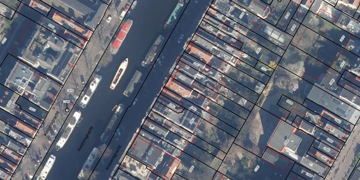 Het perceel waarop Keizersgracht 35-D staat heeft een oppervlakte van 331 m². Dit is een groot perceel. De perceeloppervlakte wordt geregistreerd door het Kadaster. Gedetailleerde informatie over de maten van dit perceel kunt u vinden in het rapport Kadastrale kaart met maatvoering van Keizersgracht 35-D.