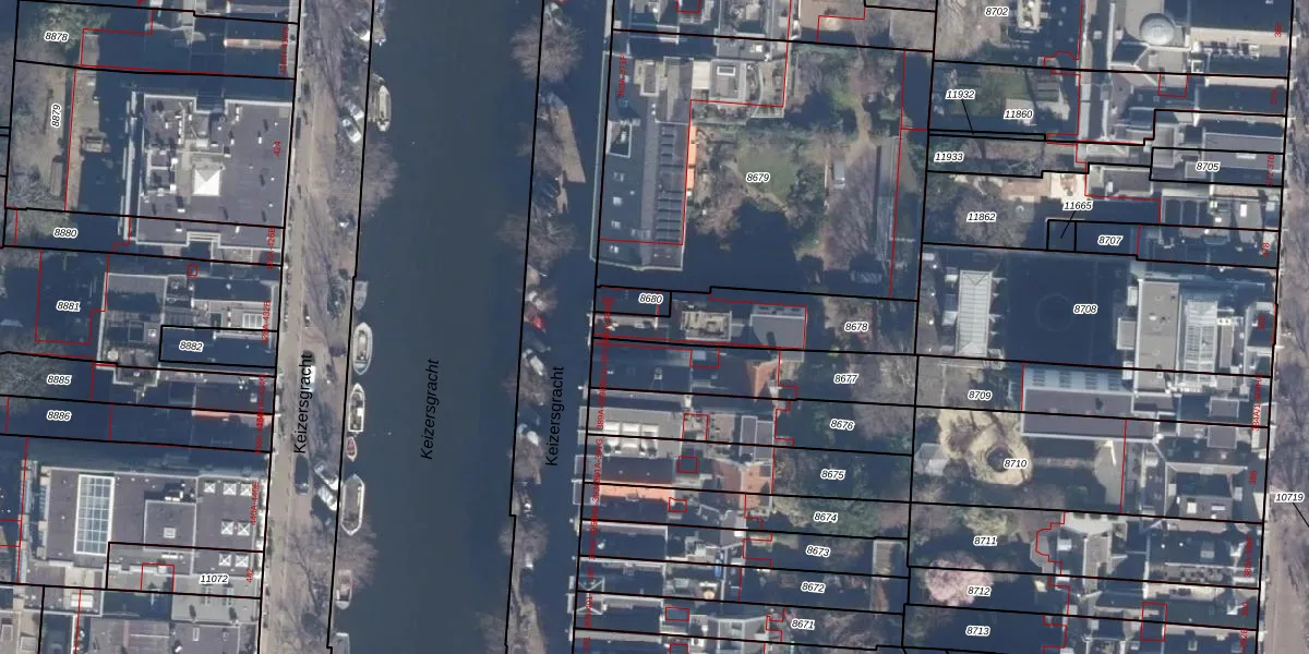 Het perceel waarop Keizersgracht 385-B staat heeft een oppervlakte van 368 m². Dit is een groot perceel. De perceeloppervlakte wordt geregistreerd door het Kadaster. Gedetailleerde informatie over de maten van dit perceel kunt u vinden in het rapport Kadastrale kaart met maatvoering van Keizersgracht 385-B.