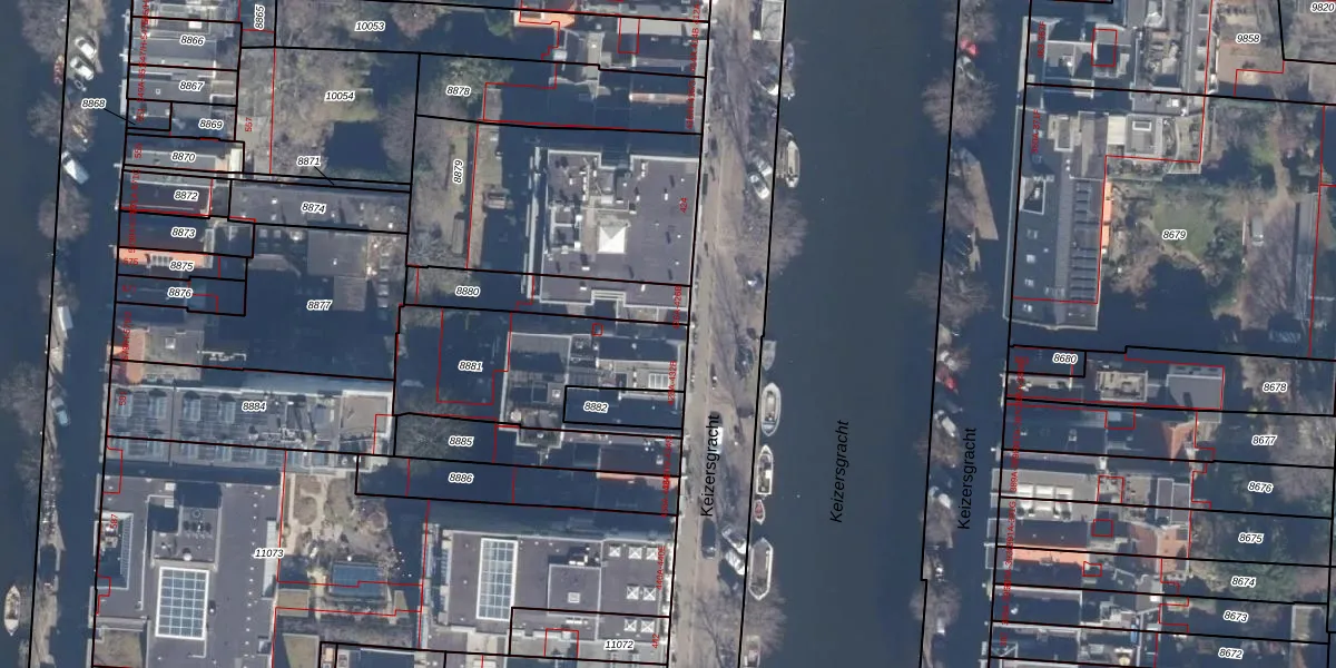 Het perceel waarop Keizersgracht 428-B staat heeft een oppervlakte van 632 m². Dit is een groot perceel. De perceeloppervlakte wordt geregistreerd door het Kadaster. Gedetailleerde informatie over de maten van dit perceel kunt u vinden in het rapport Kadastrale kaart met maatvoering van Keizersgracht 428-B.