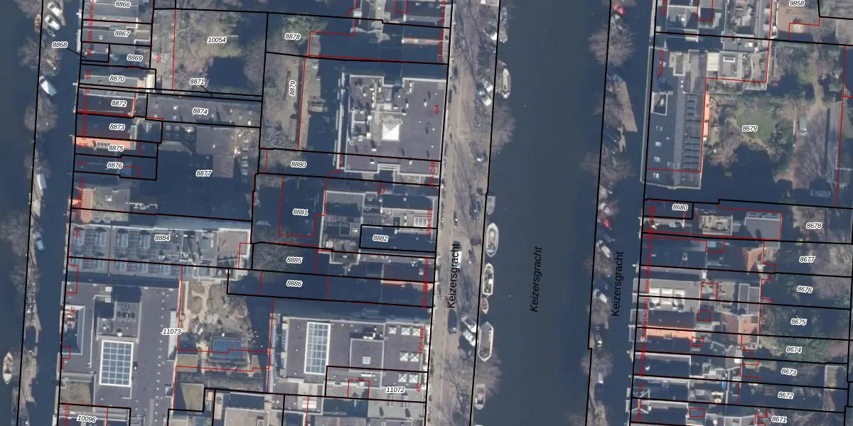 Het perceel waarop Keizersgracht 430-K staat heeft een oppervlakte van 632 m². Dit is een groot perceel. De perceeloppervlakte wordt geregistreerd door het Kadaster. Gedetailleerde informatie over de maten van dit perceel kunt u vinden in het rapport Kadastrale kaart met maatvoering van Keizersgracht 430-K.