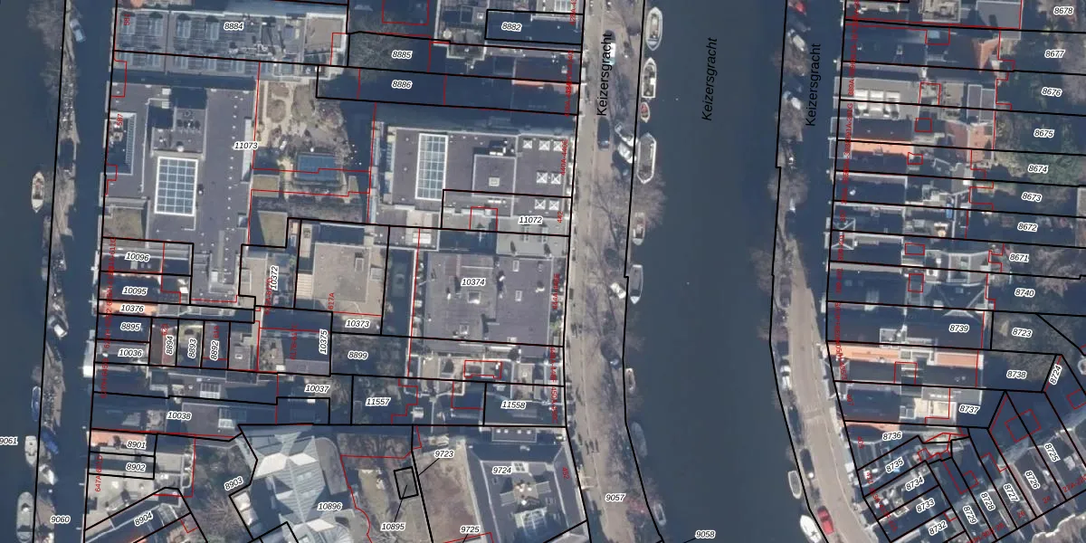 Het perceel waarop Keizersgracht 444-G staat heeft een oppervlakte van 675 m². Dit is een groot perceel. De perceeloppervlakte wordt geregistreerd door het Kadaster. Gedetailleerde informatie over de maten van dit perceel kunt u vinden in het rapport Kadastrale kaart met maatvoering van Keizersgracht 444-G.