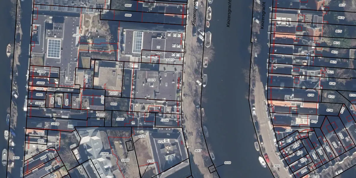 Het perceel waarop Keizersgracht 446-A staat heeft een oppervlakte van 675 m². Dit is een groot perceel. De perceeloppervlakte wordt geregistreerd door het Kadaster. Gedetailleerde informatie over de maten van dit perceel kunt u vinden in het rapport Kadastrale kaart met maatvoering van Keizersgracht 446-A.