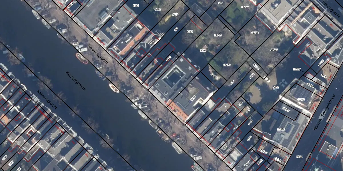 Het perceel waarop Keizersgracht 515-K staat heeft een oppervlakte van 879 m². Dit is een groot perceel. De perceeloppervlakte wordt geregistreerd door het Kadaster. Gedetailleerde informatie over de maten van dit perceel kunt u vinden in het rapport Kadastrale kaart met maatvoering van Keizersgracht 515-K.