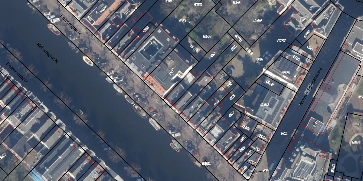 Het perceel waarop Keizersgracht 519-B staat heeft een oppervlakte van 312 m². Dit is een groot perceel. De perceeloppervlakte wordt geregistreerd door het Kadaster. Gedetailleerde informatie over de maten van dit perceel kunt u vinden in het rapport Kadastrale kaart met maatvoering van Keizersgracht 519-B.