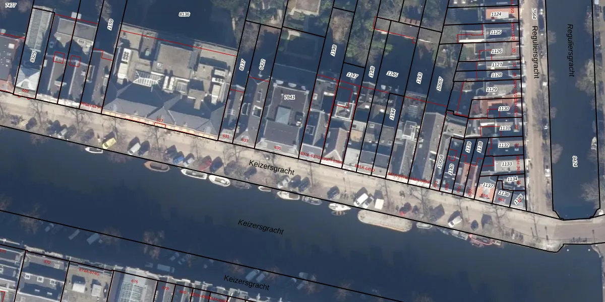 Het perceel waarop Keizersgracht 637-C staat heeft een oppervlakte van 384 m². Dit is een groot perceel. De perceeloppervlakte wordt geregistreerd door het Kadaster. Gedetailleerde informatie over de maten van dit perceel kunt u vinden in het rapport Kadastrale kaart met maatvoering van Keizersgracht 637-C.