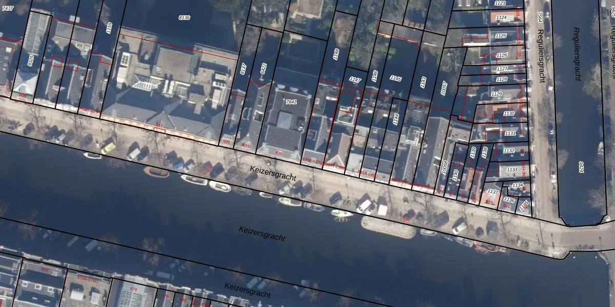 Het perceel waarop Keizersgracht 637-E staat heeft een oppervlakte van 384 m². Dit is een groot perceel. De perceeloppervlakte wordt geregistreerd door het Kadaster. Gedetailleerde informatie over de maten van dit perceel kunt u vinden in het rapport Kadastrale kaart met maatvoering van Keizersgracht 637-E.