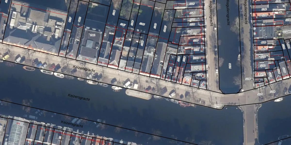 Het perceel waarop Keizersgracht 647-B staat heeft een oppervlakte van 383 m². Dit is een groot perceel. De perceeloppervlakte wordt geregistreerd door het Kadaster. Gedetailleerde informatie over de maten van dit perceel kunt u vinden in het rapport Kadastrale kaart met maatvoering van Keizersgracht 647-B.