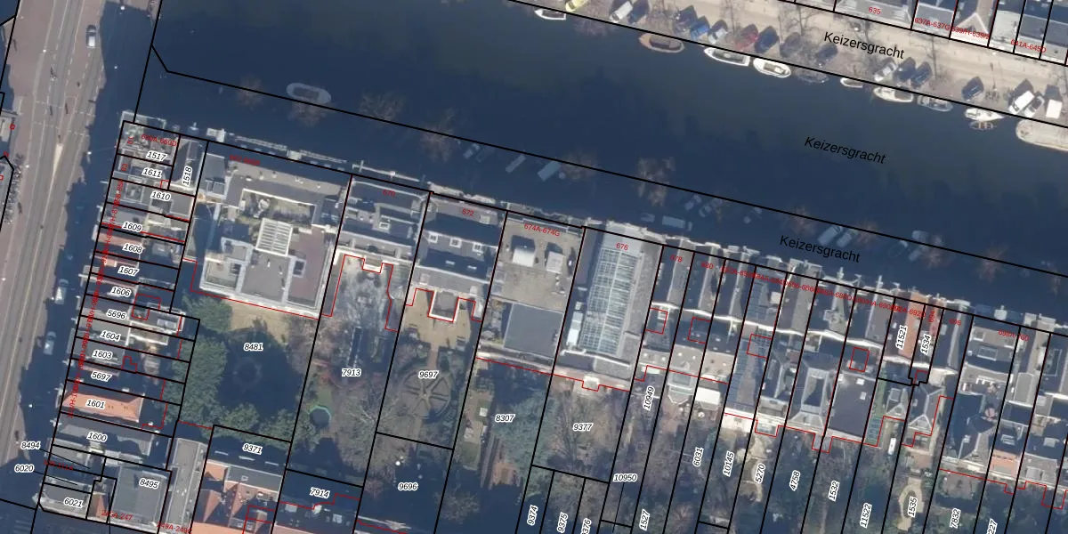 Het perceel waarop Keizersgracht 674-E staat heeft een oppervlakte van 1098 m². Dit is een zeer groot perceel. De perceeloppervlakte wordt geregistreerd door het Kadaster. Gedetailleerde informatie over de maten van dit perceel kunt u vinden in het rapport Kadastrale kaart met maatvoering van Keizersgracht 674-E.