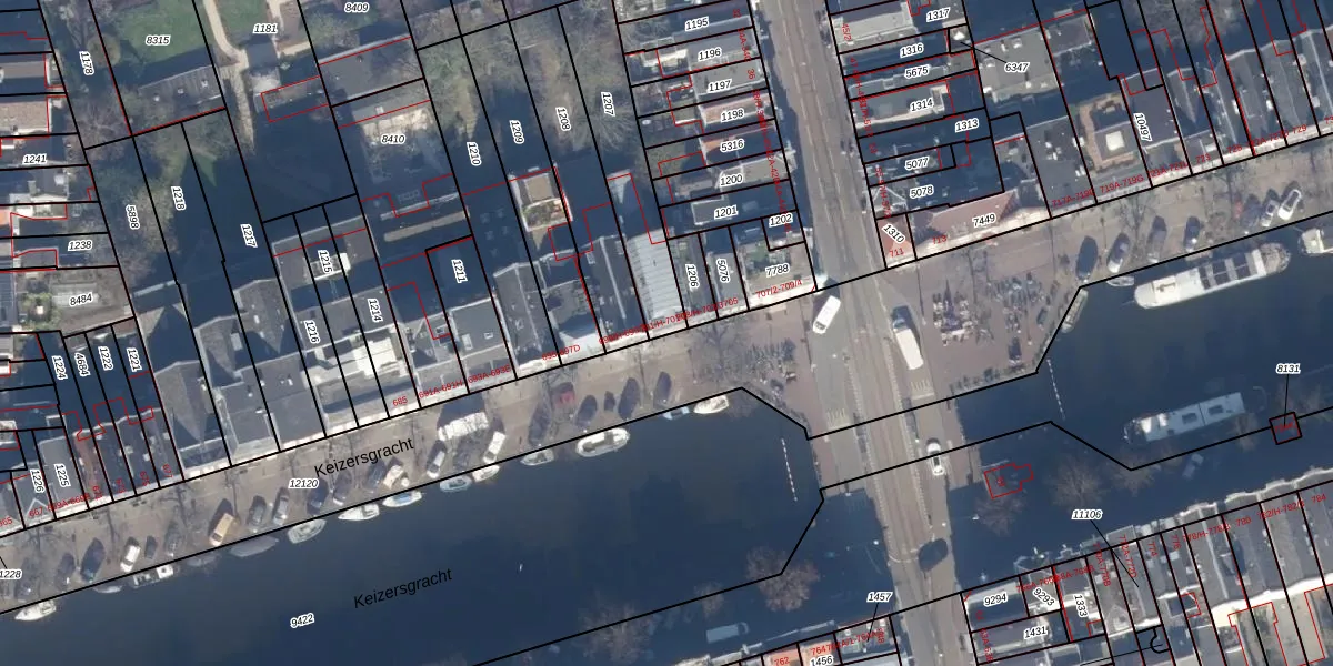 Het perceel waarop Keizersgracht 701-2 staat heeft een oppervlakte van 376 m². Dit is een groot perceel. De perceeloppervlakte wordt geregistreerd door het Kadaster. Gedetailleerde informatie over de maten van dit perceel kunt u vinden in het rapport Kadastrale kaart met maatvoering van Keizersgracht 701-2.