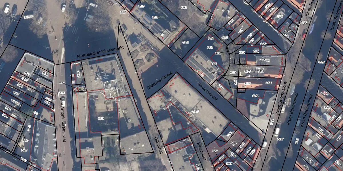 Keizersstraat 16-B is gelegen op kadastraal perceel ASD05G8553. Deze kadastrale aanduiding is uniek en wordt gebruikt door het Kadaster om eigendomsrechten en andere zakelijke rechten vast te leggen. Het perceel maakt onderdeel uit van de kadastrale gemeente Amsterdam.