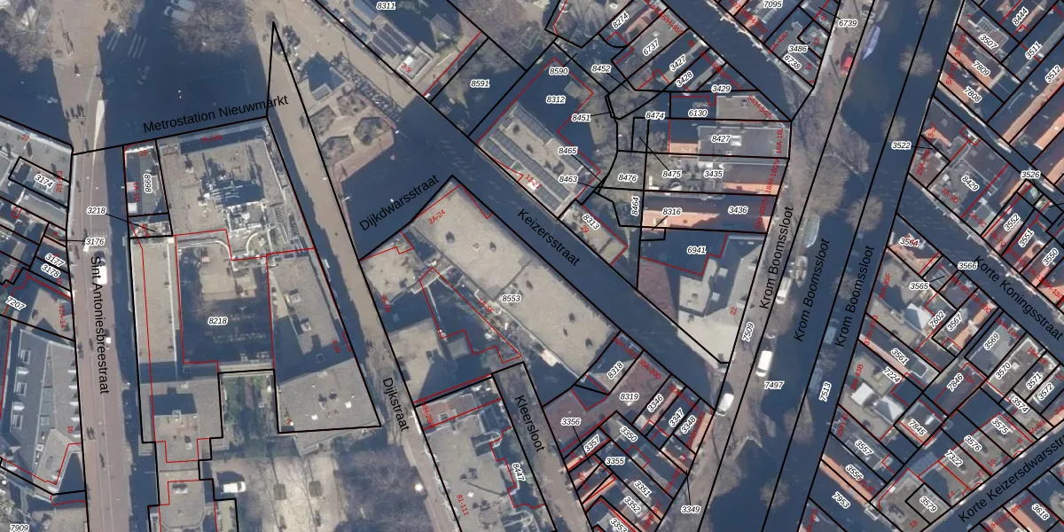Keizersstraat 20 is gelegen op kadastraal perceel ASD05G8553. Deze kadastrale aanduiding is uniek en wordt gebruikt door het Kadaster om eigendomsrechten en andere zakelijke rechten vast te leggen. Het perceel maakt onderdeel uit van de kadastrale gemeente Amsterdam.