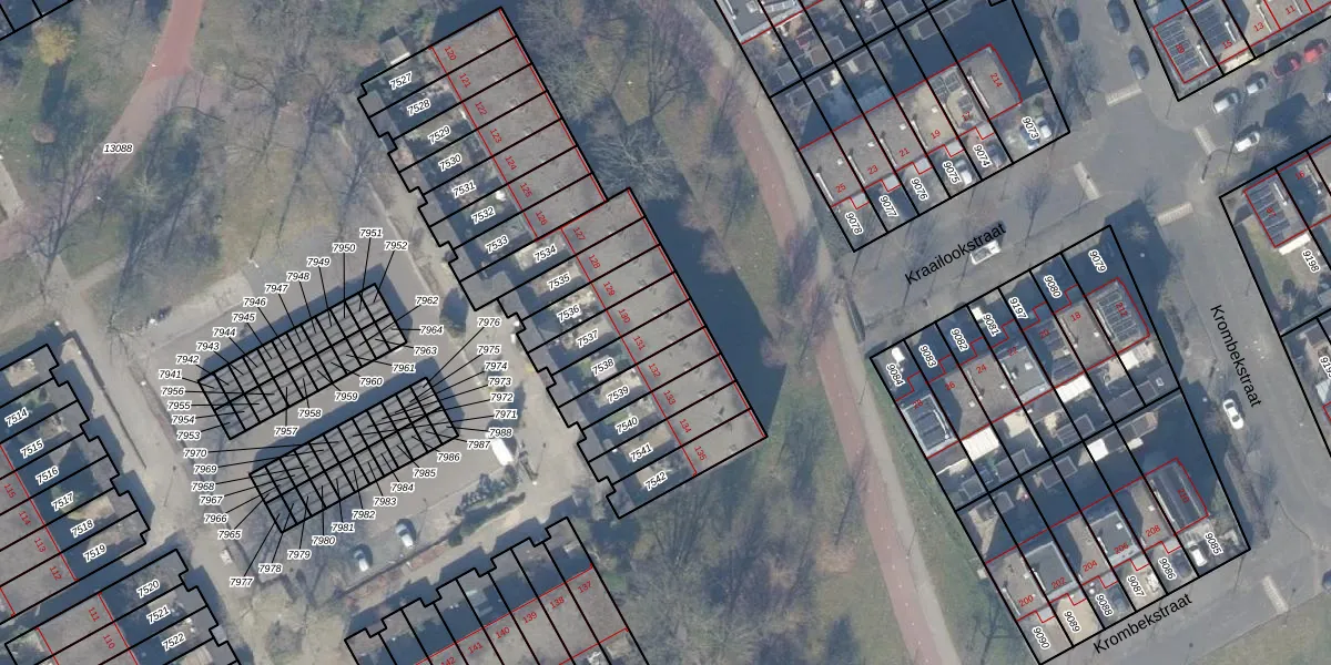 Gebruik de zoekbalk of klik op een perceel voor informatie over de adressen binnen dit perceel.