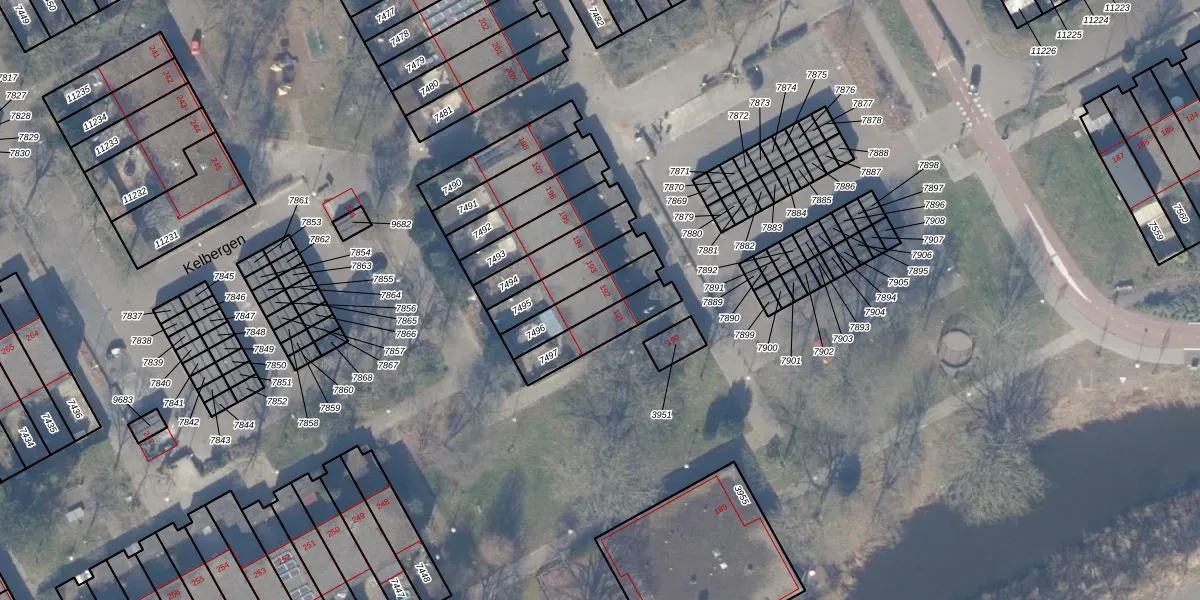 Gebruik de zoekbalk of klik op een perceel voor informatie over de adressen binnen dit perceel.
