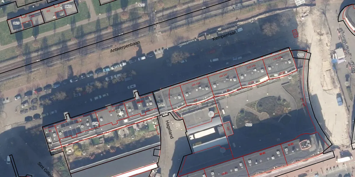 Het perceel waarop Kempenlaan 104 staat heeft een oppervlakte van 5540 m². Dit is een zeer groot perceel. De perceeloppervlakte wordt geregistreerd door het Kadaster. Gedetailleerde informatie over de maten van dit perceel kunt u vinden in het rapport Kadastrale kaart met maatvoering van Kempenlaan 104.