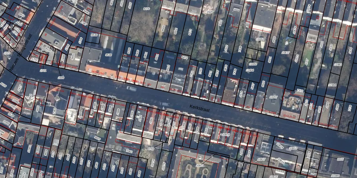 Het perceel waarop Kerkstraat 187-1 staat heeft een oppervlakte van 163 m². Dit is een middelgroot perceel. De perceeloppervlakte wordt geregistreerd door het Kadaster. Gedetailleerde informatie over de maten van dit perceel kunt u vinden in het rapport Kadastrale kaart met maatvoering van Kerkstraat 187-1.