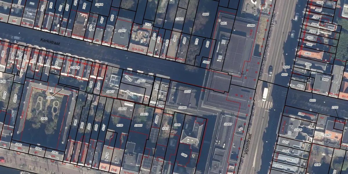 Het perceel waarop Kerkstraat 224 staat heeft een oppervlakte van 1988 m². Dit is een zeer groot perceel. De perceeloppervlakte wordt geregistreerd door het Kadaster. Gedetailleerde informatie over de maten van dit perceel kunt u vinden in het rapport Kadastrale kaart met maatvoering van Kerkstraat 224.