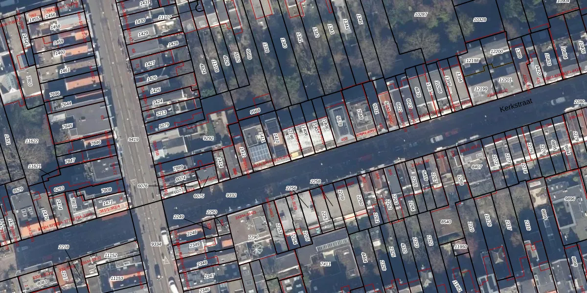Het perceel waarop Kerkstraat 399-D staat heeft een oppervlakte van 82 m². Dit is een klein perceel. De perceeloppervlakte wordt geregistreerd door het Kadaster. Gedetailleerde informatie over de maten van dit perceel kunt u vinden in het rapport Kadastrale kaart met maatvoering van Kerkstraat 399-D.