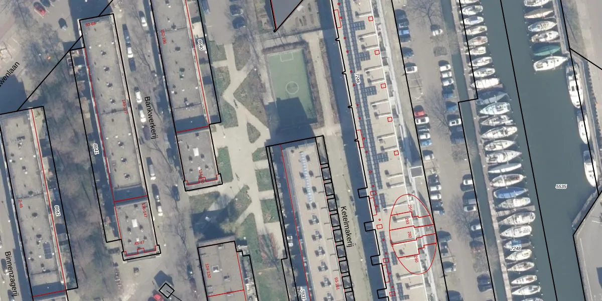 Het perceel waarop het adres ligt is ASD07-K-7831. De afkorting 'ASD07' staat voor kadastrale gemeente Amsterdam. De gemiddelde perceelgrootte in Amsterdam is 3010,05 m². Dit perceel is kleiner: de perceeloppervlakte bedraagt 1615 m². De grootste perceeloppervlakte in de kadastrale gemeente is 56,2 ha. De kleinste oppervlakte bedraagt 0 m². Op het perceel zijn 34 adressen aanwezig. In de Basisregistratie Kadaster (BRK) werden de grenzen van het perceel geregistreerd op 31-08-2006.