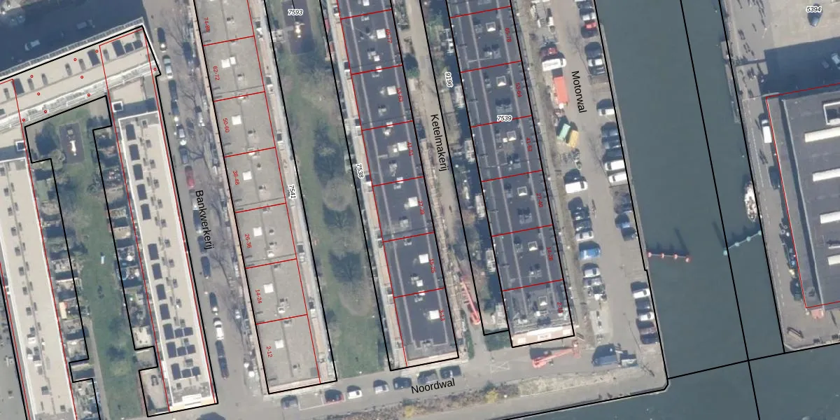 Het perceel waarop het adres ligt is ASD07-K-7538. De afkorting 'ASD07' staat voor kadastrale gemeente Amsterdam. De gemiddelde perceelgrootte in Amsterdam is 3010,05 m². Dit perceel is kleiner: de perceeloppervlakte bedraagt 1650 m². De grootste perceeloppervlakte in de kadastrale gemeente is 56,2 ha. De kleinste oppervlakte bedraagt 0 m². Op het perceel zijn 44 adressen aanwezig. In de Basisregistratie Kadaster (BRK) werden de grenzen van het perceel geregistreerd op 31-08-2006.