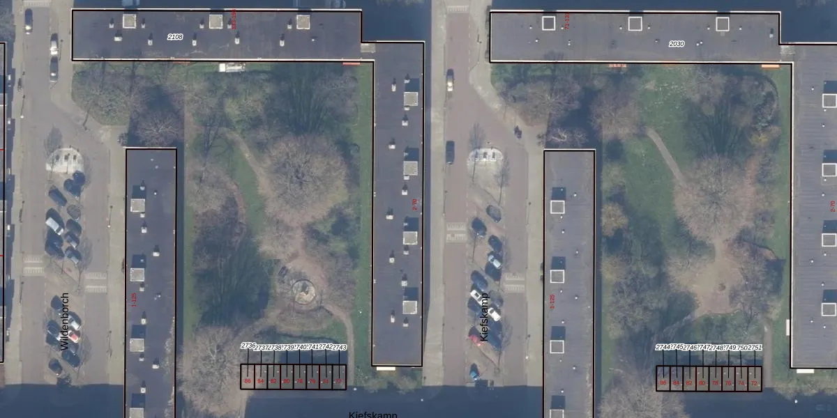 Het perceel waarop Kiefskamp 36 staat heeft een oppervlakte van 1772 m². Dit is een zeer groot perceel. De perceeloppervlakte wordt geregistreerd door het Kadaster. Gedetailleerde informatie over de maten van dit perceel kunt u vinden in het rapport Kadastrale kaart met maatvoering van Kiefskamp 36.